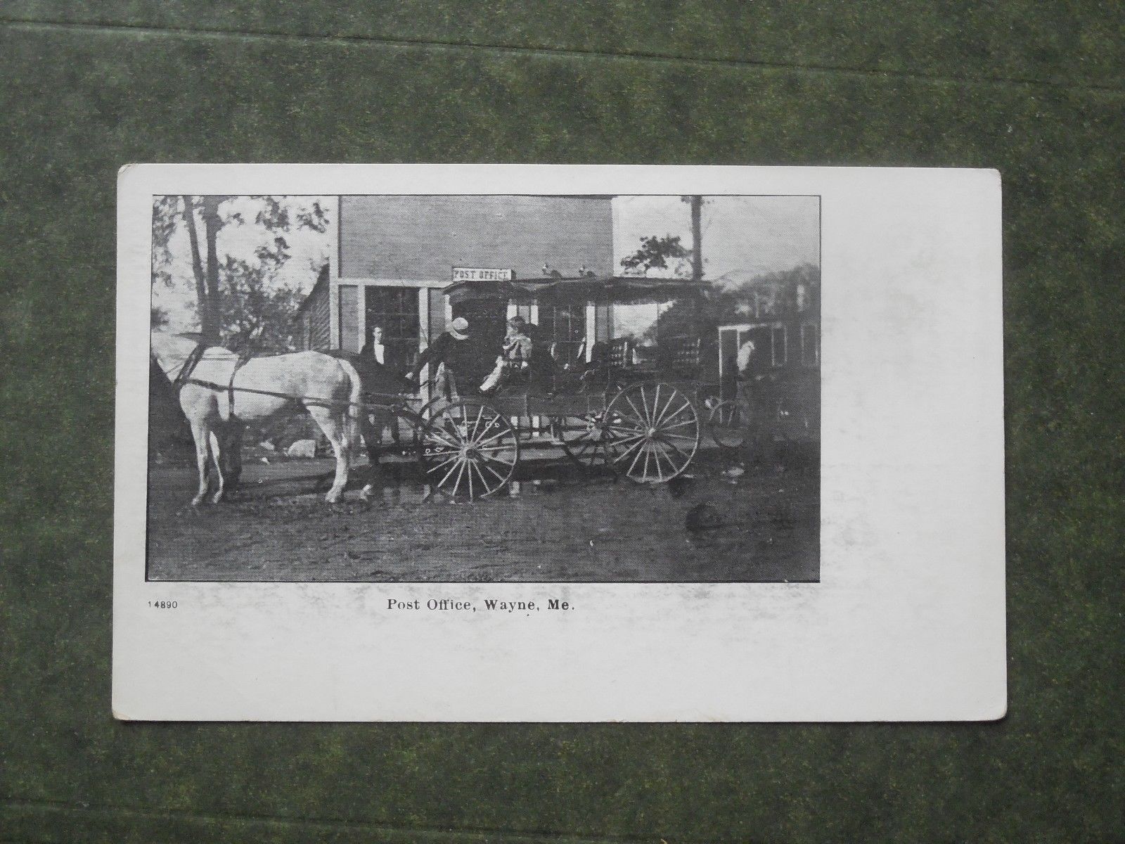 Post Card Wayne, ME Post Office with Horses and Wagon in Front c-est 1910 F85462