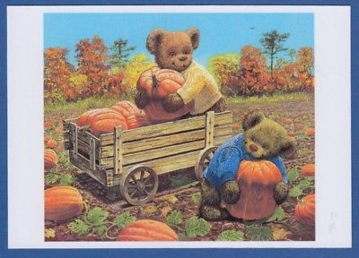 Title (ebay affiliate link): Harvest of Pumpkins, two teddy bears and garden trolley, Russian modern postcard