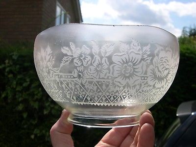 SPARE DEEP ETCH GLASS BOWL SHADE FOR PARAFFIN OIL LAMP 4 INCH DUPLEX SIZE
