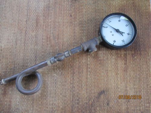 Vintage Ashcroft steam punk gauge, steel case, brass pigtail, petcock and tee