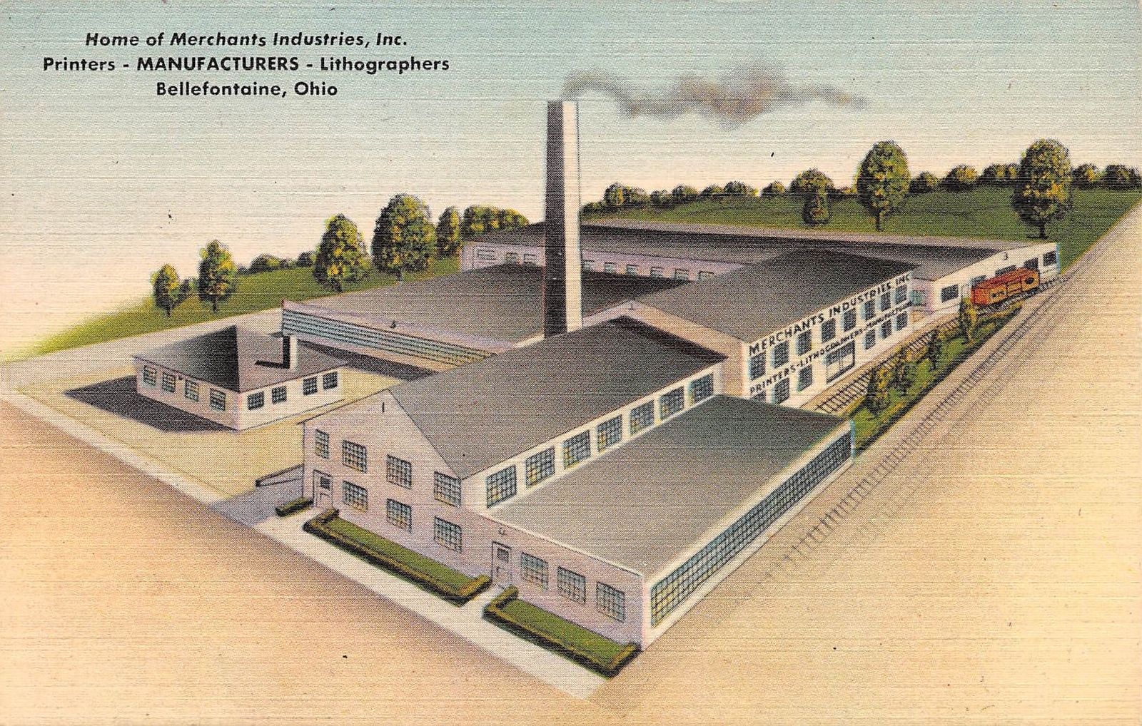 BELLEFONTAINE Ohio US USA postcard Merchants Industries Printers Linen card