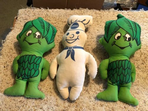 Title (ebay affiliate link): Vintage JOLLY GREEN GIANT SPROUT CLOTH Stuffed DOLLS (2) AND PILLSBURY DOUGHBOY