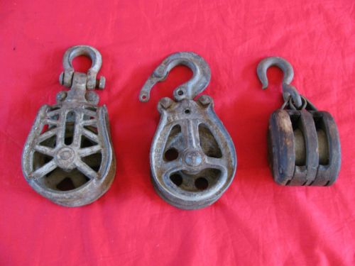Title (ebay affiliate link): Lot of 3 Antique Vintage Pulleys, Block and Tackle, Wood Metal