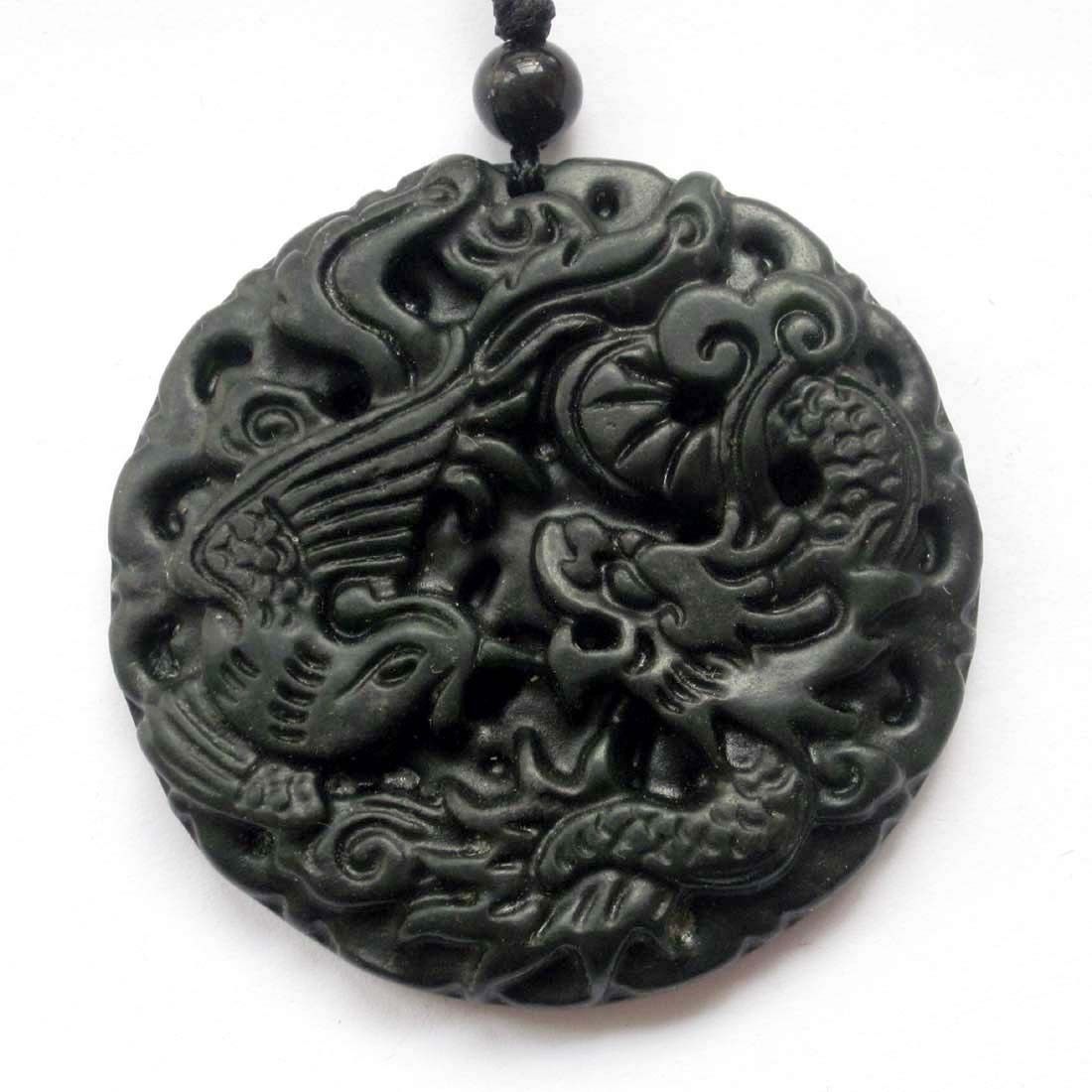 Title (ebay affiliate link): Black Green Jade Chinese Zodiac Dragon Amulet Pendant Happy Lucky Jewelry 2Faces