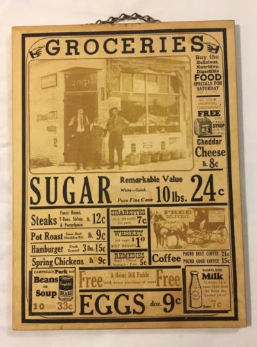 Title (ebay affiliate link): Vtg Antique Style GROCERY General Store Sign w/ Food Prices