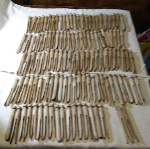 119 Vintage Antique Wooden 1950''s Clothes Pins Round Head Flat Top & 2 Flat Pins