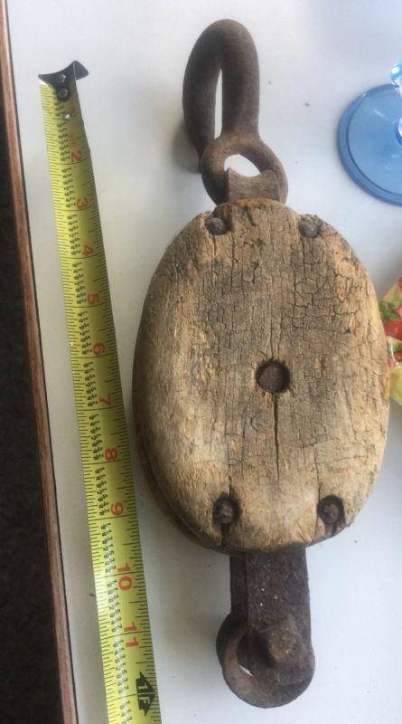 Title (ebay affiliate link): Antique Wood/Iron Block & Tackle Heavy Iron Hook/Single Pulley Barn Find