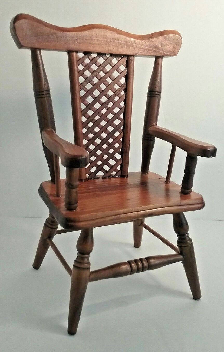 Title (ebay affiliate link): Small Lattice Backed Wooden Doll Chair with Arm Rests - 9"