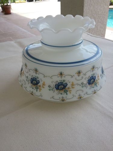 Title (ebay affiliate link): Milk Glass Lamp Shade floral design GWTW style hurricane fixture 7" fitter