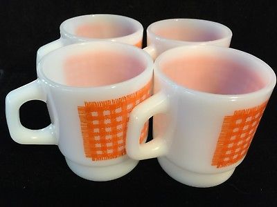 Title (ebay affiliate link): Vintage Fire King Orange & Milk Glass Mugs Orange Carpet Design Set of 4