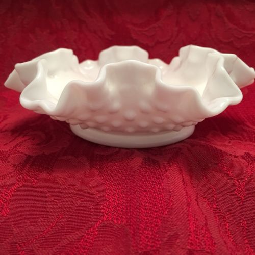 Title (ebay affiliate link): Vintage Fenton White Hobnail Milk Glass Ruffled Candy - Nut Dish Bowl