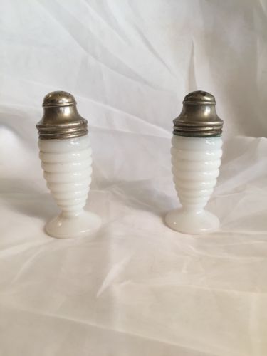 Vintage mid Century Milk Glass Salt & Pepper Shakers