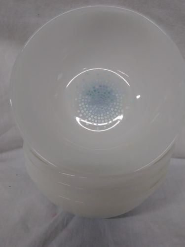 SET OF 3 Vintage Fire King White Milk Glass Soup Bowl with Blue Mosaic a807-922