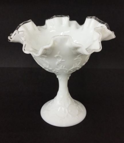 Title (ebay affiliate link): Fenton White Milk Glass Pedestal Ruffled Rim Candle Holder