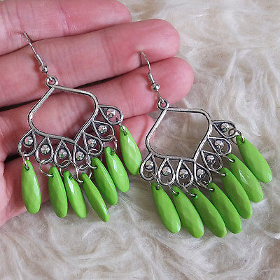 Title (ebay affiliate link): Vintage Womens Bohemian Hippies Antique Green Teardrop Fall Drop Dangle Earrings