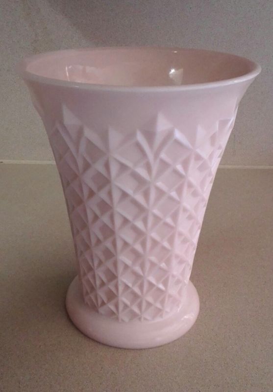 Title (ebay affiliate link): Vintage Jeanette 50''s Shell Pink 7" Milk Glass Vase Cross Hatch Diamond