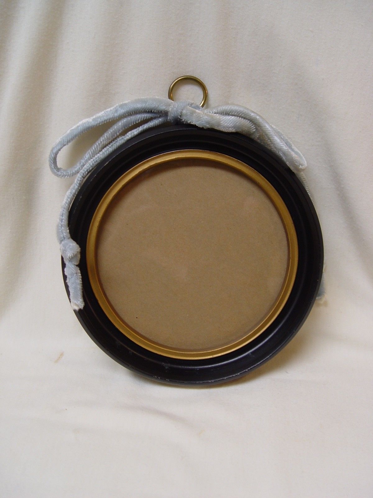 Vintage Black & Gold Wood Round 7" Picture Frame With Brass Hanger