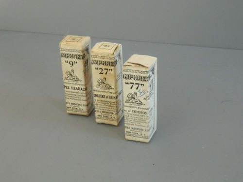 Title (ebay affiliate link): Antique Humphrey''s Homeopathic Medicine No.''s 9...27...77 Never opened