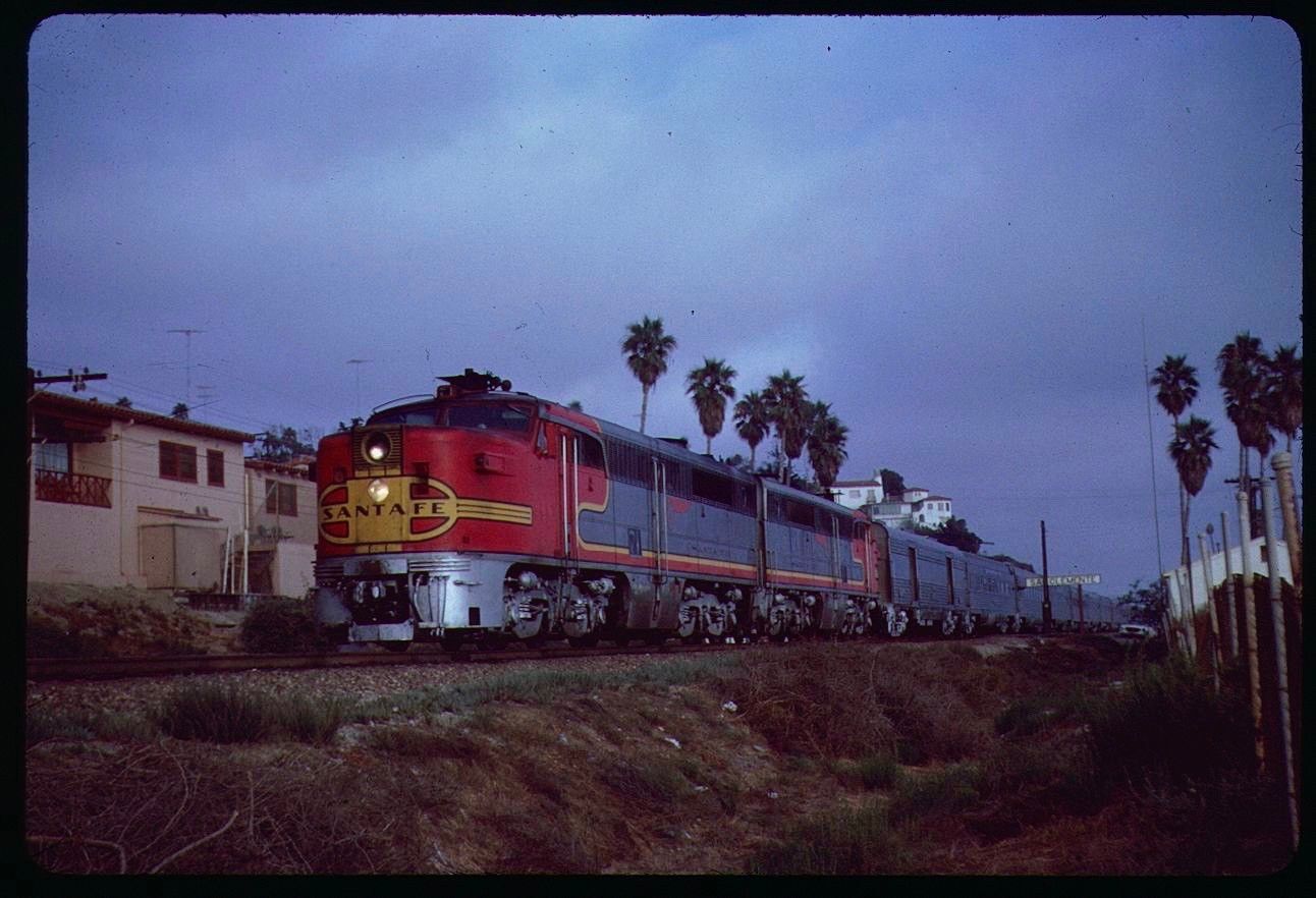 Title (ebay affiliate link): Santa Fe ATSF ALCO PA-1 #74 warbonnet pass. San Diegan San Clemente dupe slide