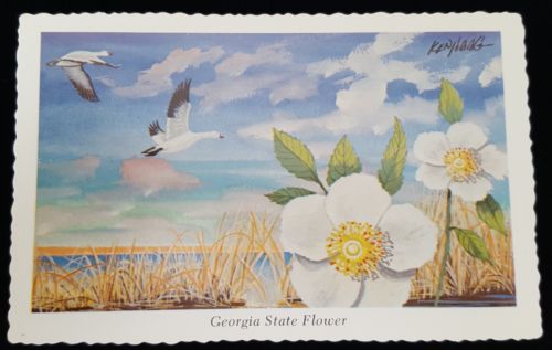 Title (ebay affiliate link): Postcard Ken Haag Georgia State Flower Cherokee Rose 1972 Capital Engravings