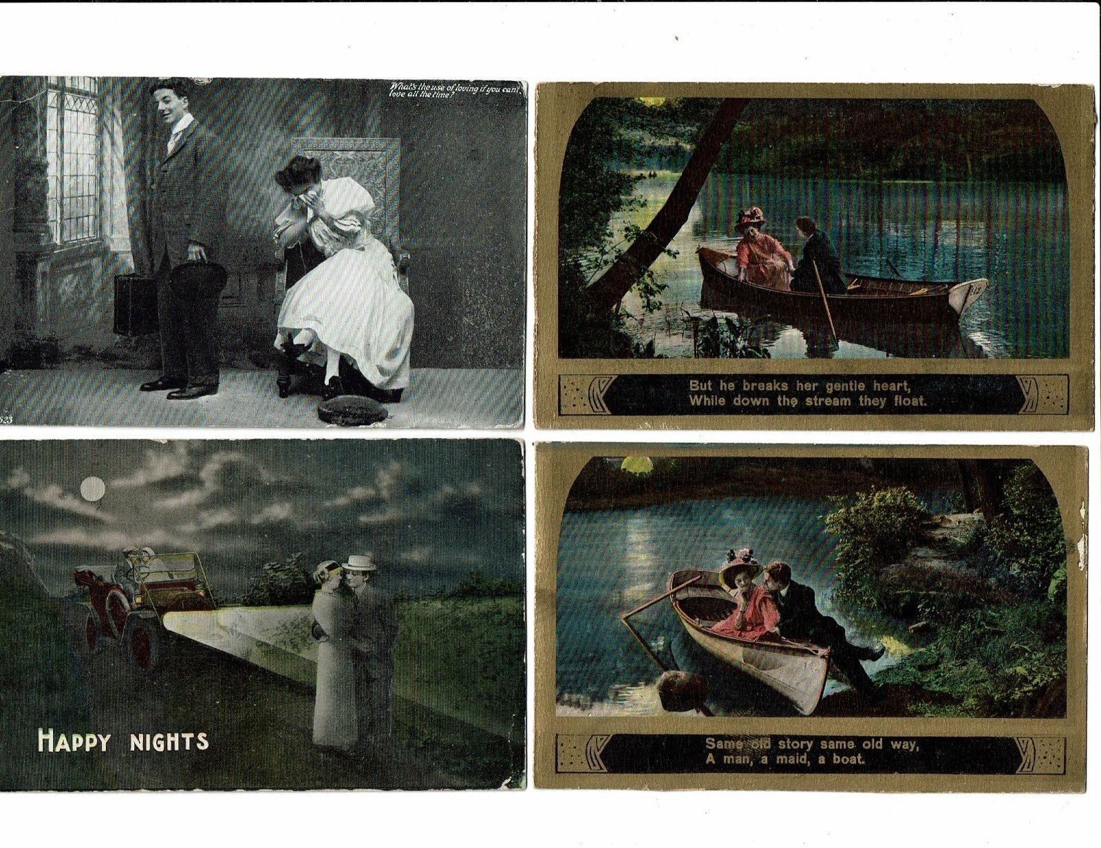 4 Card Lot, Comic, Romance, Greetings, Love in A Canoe, Happy Nights, Man Leaves