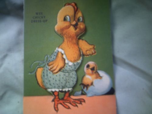 Title (ebay affiliate link): Unused Vintage Pop-up Paper Doll Wee Chick Greeting Card Mother Goose 6 Dresses