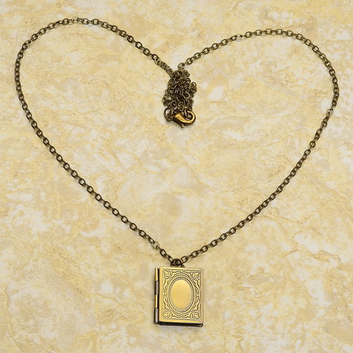 Title (ebay affiliate link): VINTAGE ANTIQUE STYLE SOLID COPPER BOOK SHAPE LOCKET NECKLACE CHAIN 24 1/4"