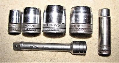 Vintage S-K Sockets 1/2" Drive 5/8,15/16,1 1/8 (2) 9/16 Deep Well - Made in USA