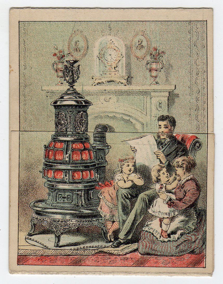 Title (ebay affiliate link): Metamorphic Victorian Tradecard, Garland Base Burner Family, Michigan Stove Co.