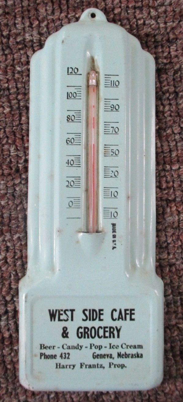 Title (ebay affiliate link): 1940s WEST SIDE CAFE & GROCERY Metal THERMOMETER...Geneva, Nebraska