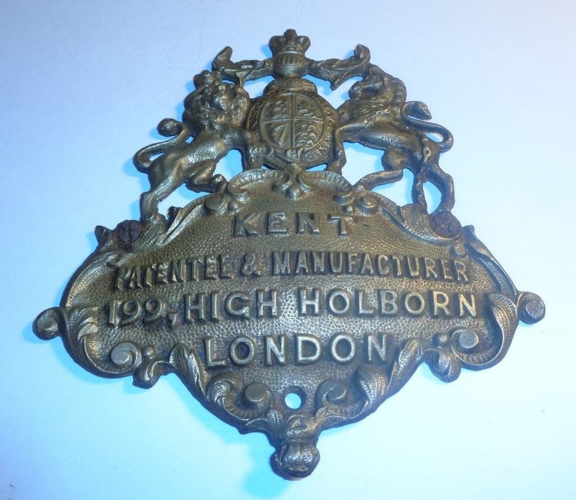 Title (ebay affiliate link): KENT: PATENTEE & MANUFACTURER, 199 HIGH HOLBORN LONDON. BRASS COAT-OF-ARMS PLATE