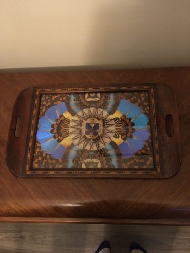 Vintage Art Deco Butterfly Wing Wood Inlay Tea Tray