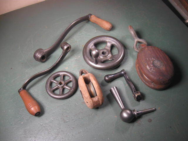 OLD USED VINTAGE TOOLS HARDWARE HANDLES PULLEYS GROUP
