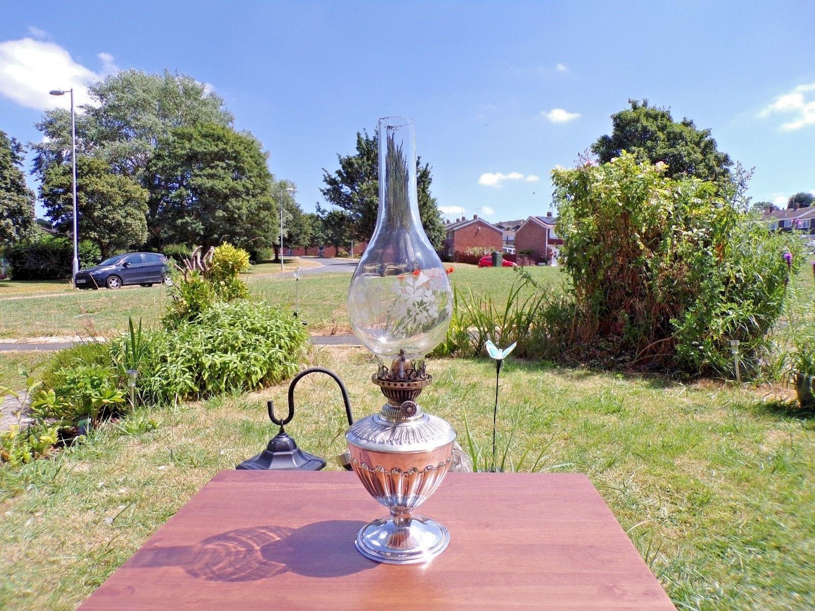Title (ebay affiliate link): Antique silver plated small Hinks oil lamp in working order stamped E&co RL L