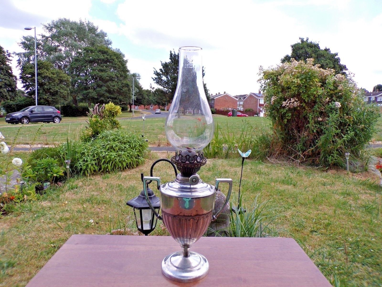 Antique silver plated small Hinks oil lamp in working order stamped J.B&S EPBM K
