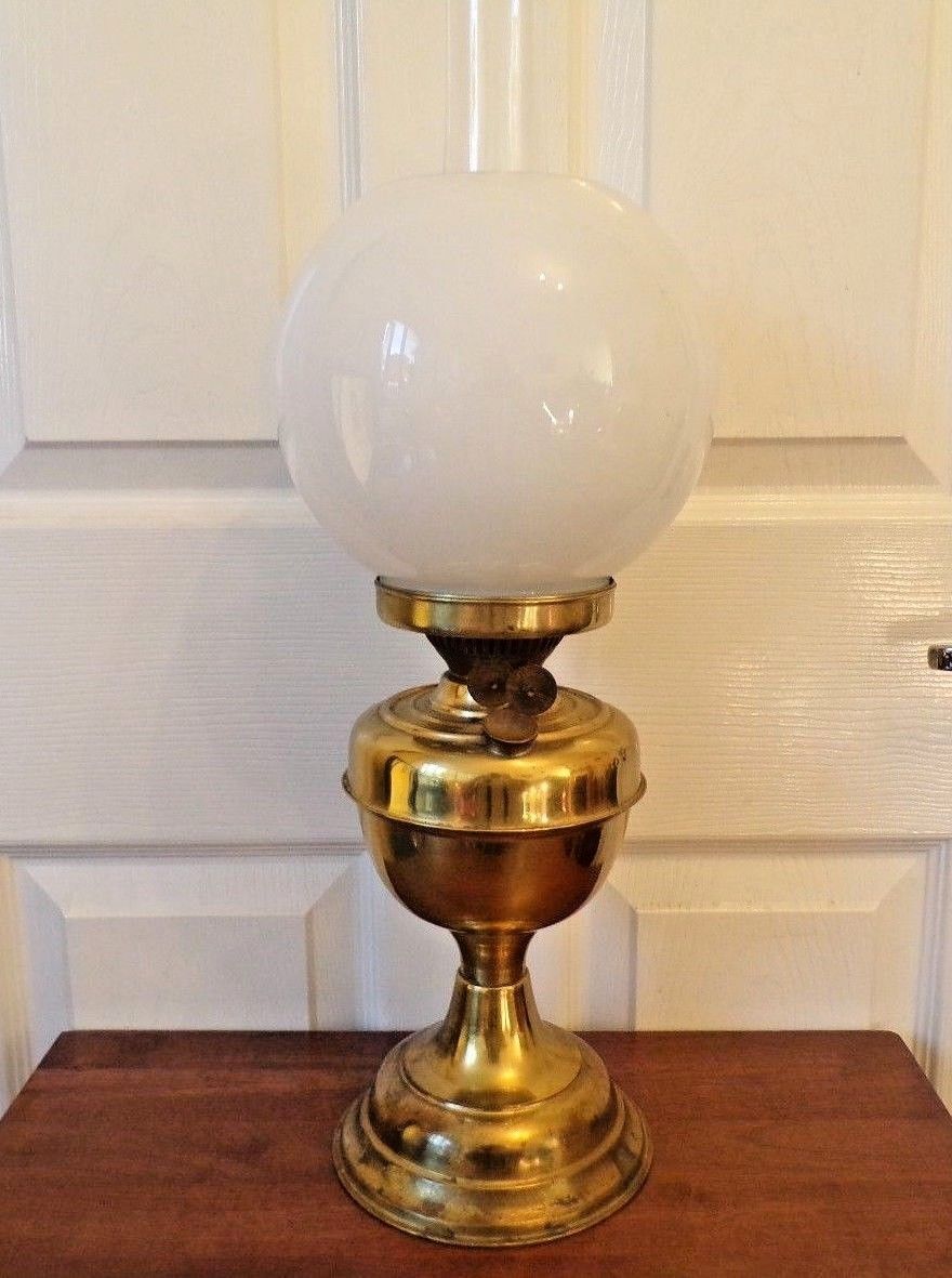 Title (ebay affiliate link): A vintage brass oil lamp with white shade Duplex twin burner working order