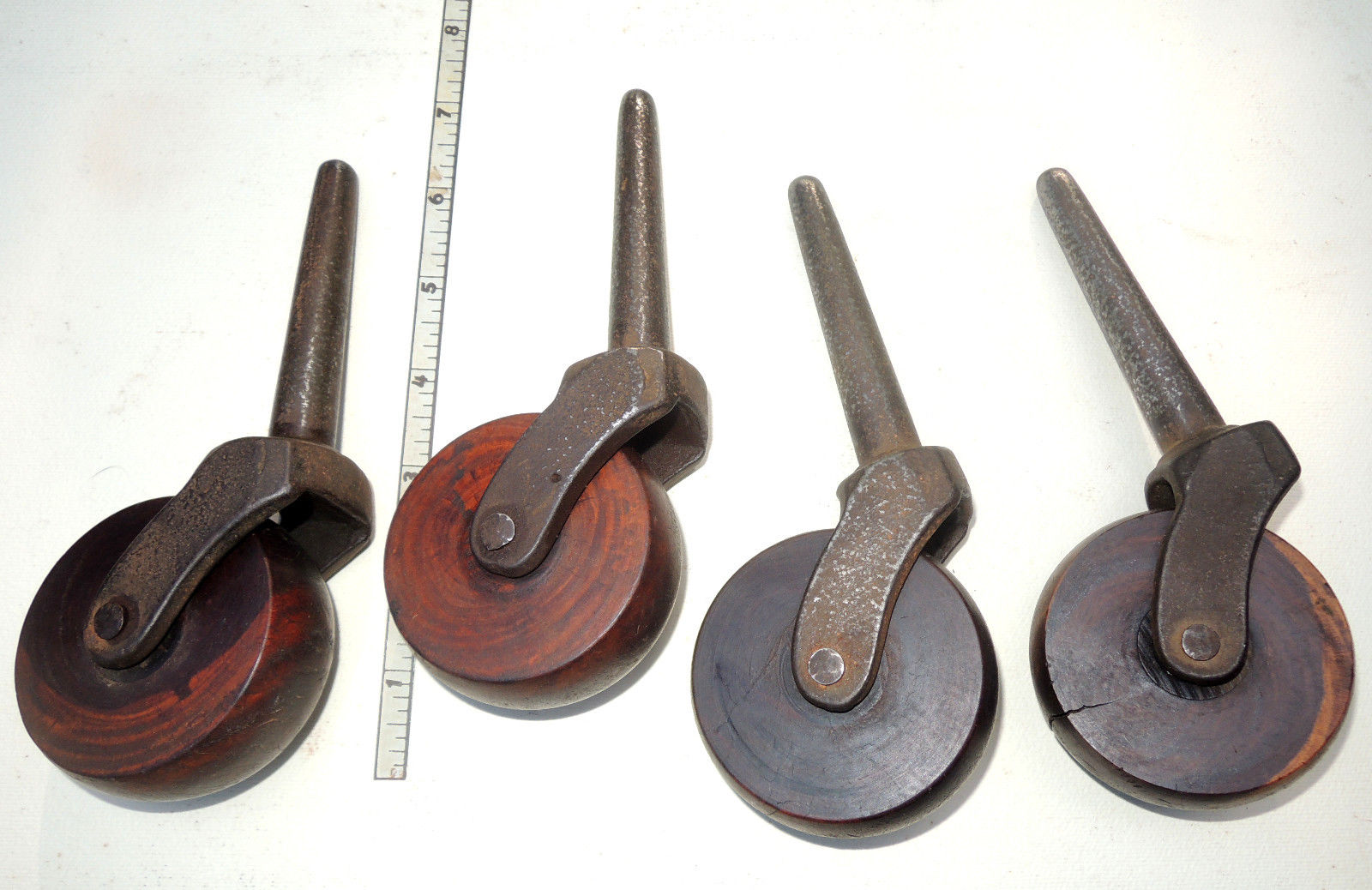 Title (ebay affiliate link): Set of 4 Large Antique Victorian Bed Casters Rollers Rosewood Wheels Iron Shafts