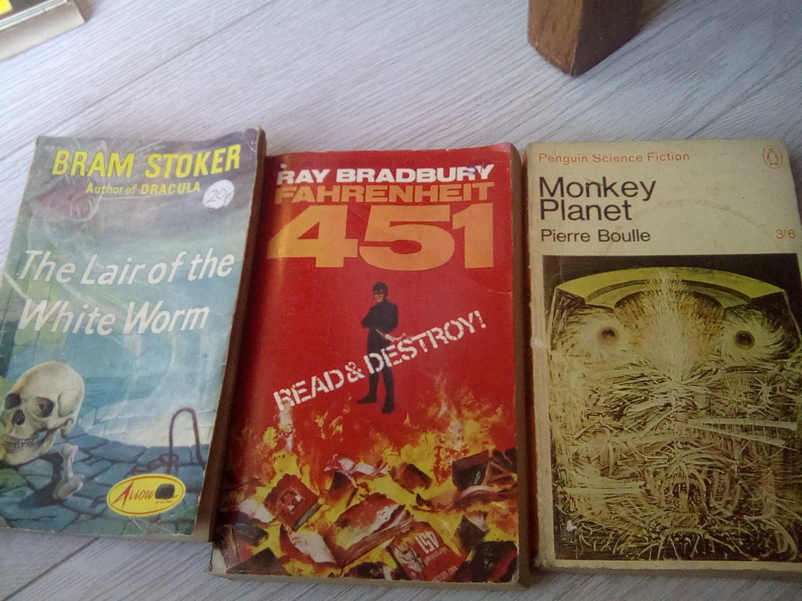Title (ebay affiliate link): Ray Bradbury Fahrenheit 451 Pierre boule monkey planet of apes stoker white worm