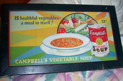 EARLY CAMBELL'S VEGETABLE SOUP ADVERTISING SIGN 12X20