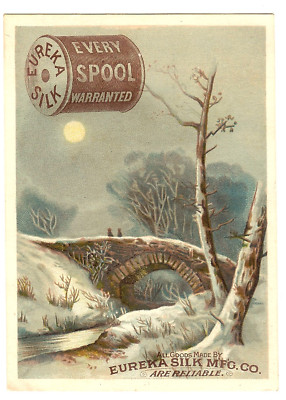 EUREKA SILK THREAD TRADE CARD~SNOW COVERED STONE BRIDGE