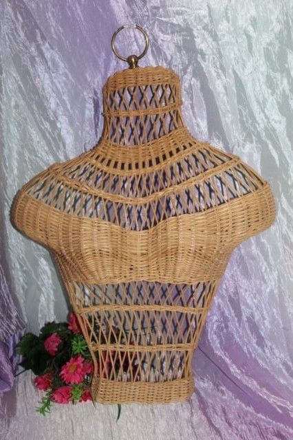 Title (ebay affiliate link): Vintage Wicker Woman''s Bust/Chest Mannequin Hanging Form~Wall Display~Estate~p3