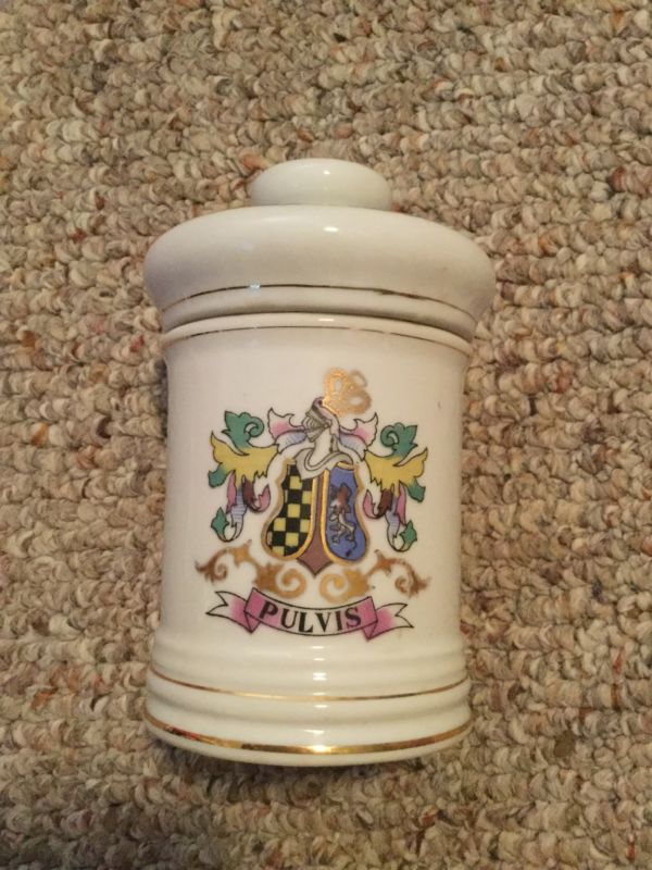 Title (ebay affiliate link): Vintage Apothecary Jar By DOM Porcelain PULVIS 5 " T x 3.25" W Gold Trimmed