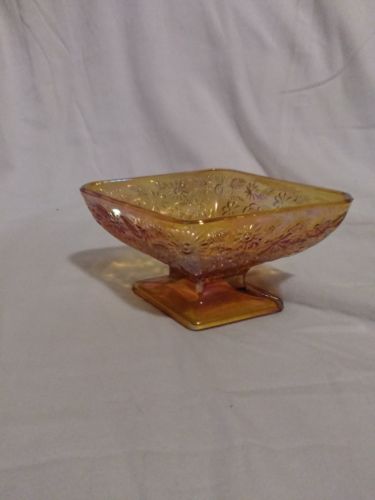 Title (ebay affiliate link): Vintage Iridescent Amber Floral Carnival Glass Dish - Diamond Shaped