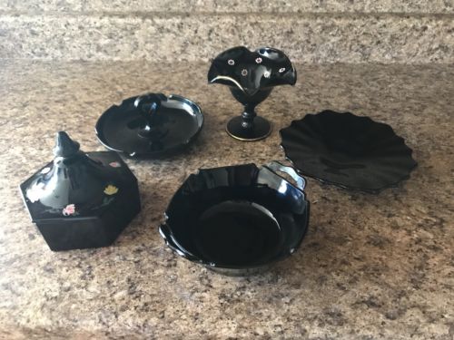 Vintage Black Depression Glass Various Pieces Lot of 5