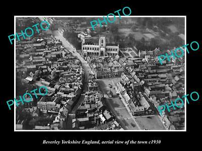 OLD LARGE HISTORIC PHOTO OF BEVERLEY YORKSHIRE ENGLAND, TOWN AERIAL VIEW c1930 1