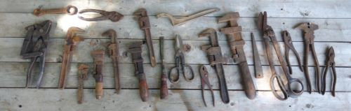 lot of Antique Tools - old rusty unusual collectible Sheet metal shears Wrenches