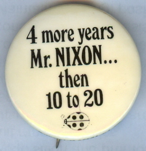 Title (ebay affiliate link): 4 MORE YEARS, THEN 10 to 20, ANTI NIXON WATERGATE PIN