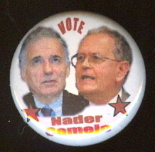 RALPH NADER, CAMEJO GREEN PARTY 2004 UNUSUAL SIZE PIN