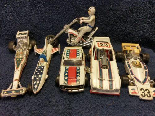 Title (ebay affiliate link): Evel Knievel Stunt Cycle Chopper Diecast Evil Cars Miniatures Lot Rare 70s Toys