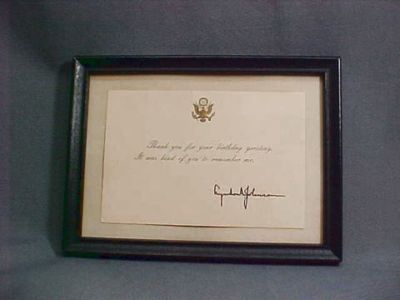 Title (ebay affiliate link): Lyndon B Johnson Birthday Thank You Card to Tom Perew